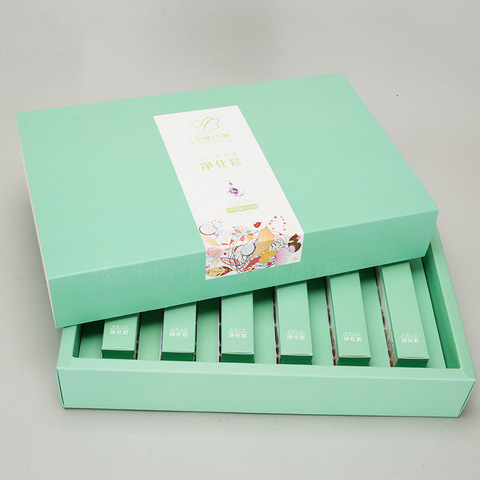 Conjunto de productos de cuidado de la piel con impresión en color de alta gama personalizada, caja de regalo con tapa abatible, caja de embalaje de cosméticos, cartón